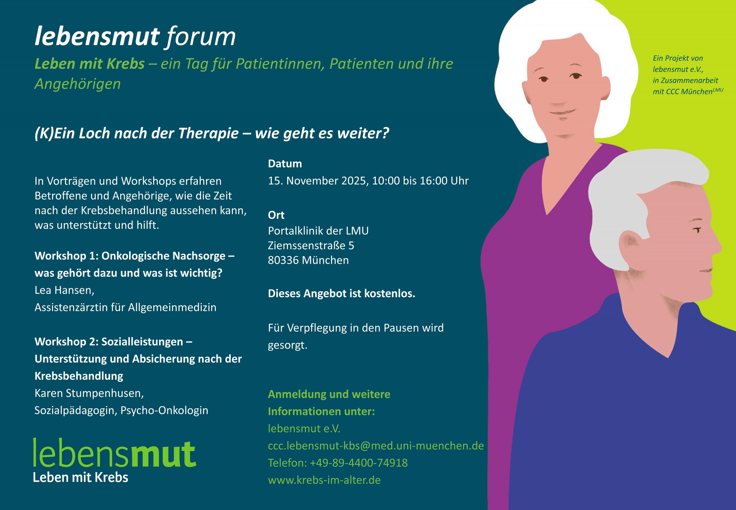 Wir bitten um Anmeldung unter: CCC.Lebensmut-kbs@med.uni-muenchen.de oder (089) 4400-74918